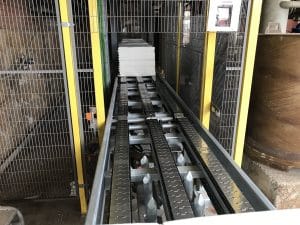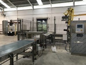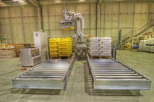 A flour product factory with the capacity to palletize 2 baggers simultaneously, producing 4 million bags per year. Thanks to BROLLA's layer palletizing system and hybrid robot, they can now palletize 4 baggers simultaneously, with a production of 5.3 million bags per year.