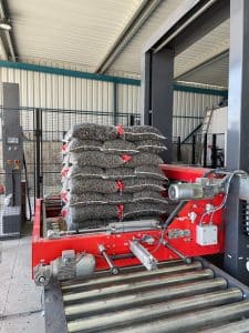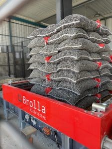 Fábrica de pellets con capacidad para ensacar y paletizar 4 millones de sacos al año. Con la integración de una línea de paletización robotizada con ensacadora de Brolla, ahora son capaces de producir y paletizar 6 millones de sacos al año. Además, se han reducido las pérdidas de producto en un 70% durante el ensacado, paletizado y transporte.